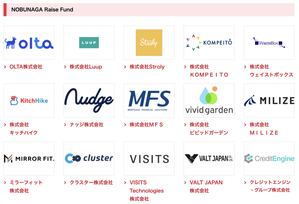 | 直近のファンド組成 | NOBUNAGA Growing Fund 投資事業有限責任組合 (2025年3月) |