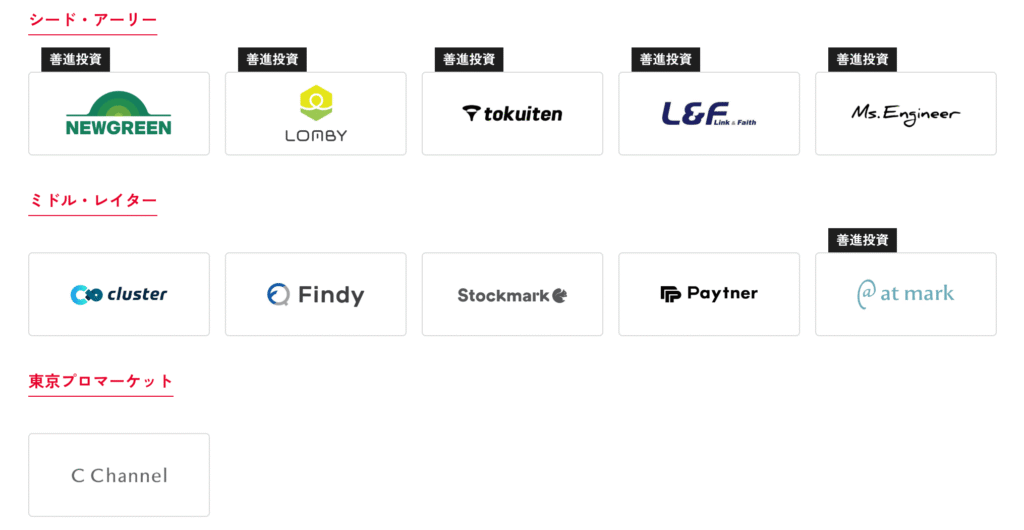 | 主な投資ラウンド | プレシード、シード、アーリー |